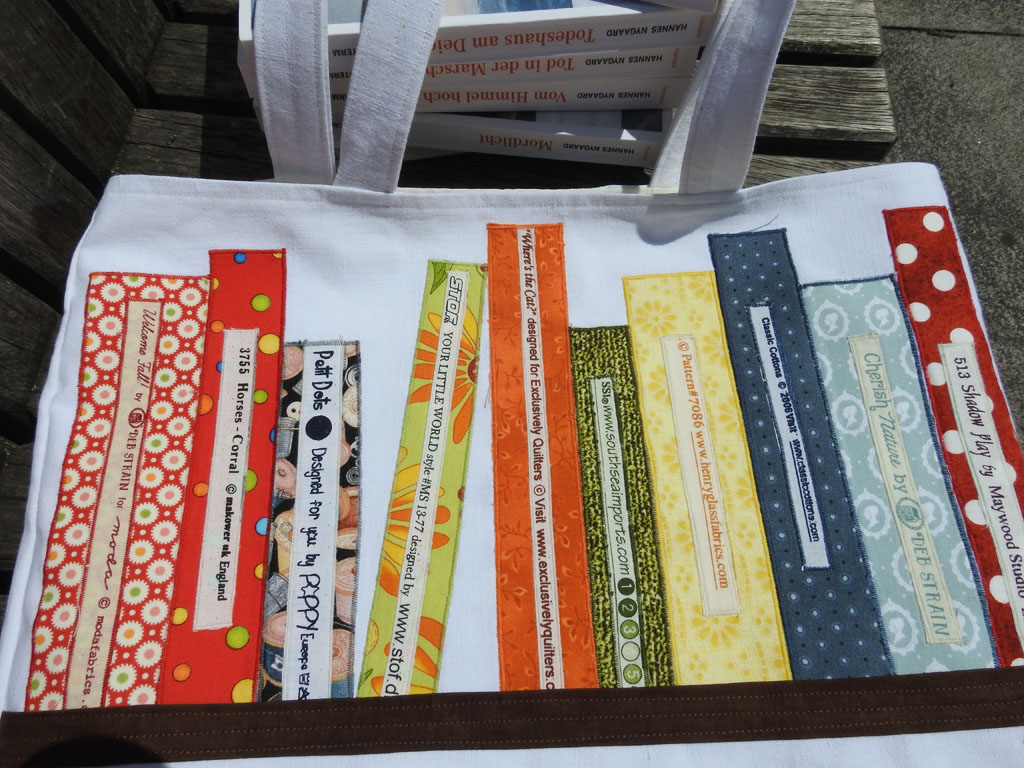 25. Da hab ich doch tatsächlich diesen wunderschönen Lesebeutel übersehen! Kann man ja nachholen, dank dem link im neuen Posting. Die Idee mit den webkanten-Buchrücken ist stark. Da packt mich doch schon wieder die Nählust.