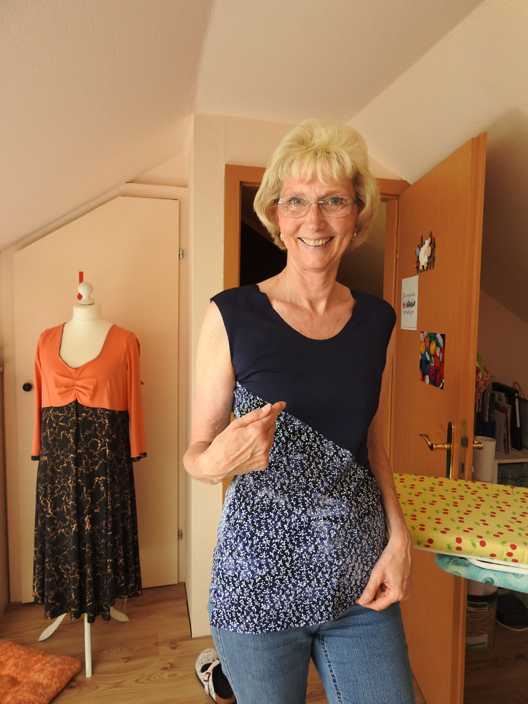 Auch Betty war fleißig. Sie nähte sich das Shirt Elara, welches ihr bei mir so gut gefallen hatte. Hier hatte ich es gezeigt. Wie auch bei mir, mussten wir bei Betty die Passform am Ausschnitt etwas anpassen. Aber das haben wir gut gemeistert.