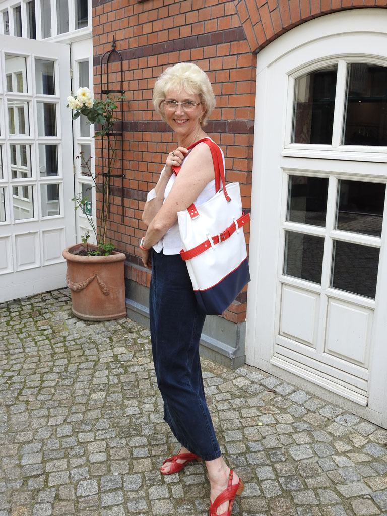 Eure beiden Shopper sind der Hammer und überzeugen mich, das Nähen das Trendthema Nummer eins ist! Das habe ich in Köln auf der h+h gehört. Einfach perfekt sind die Taschen geworden und Deine Outfit ist äußerst gelungen. Der maritime Look ist wie für Dich gemacht.