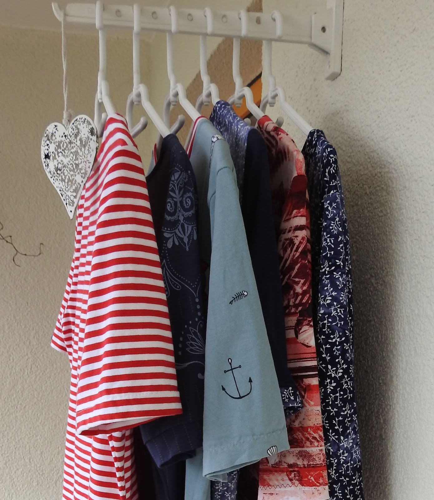 Insgesamt fünf Shirts habe ich genäht -eines fehlt auf dem Bild- und zwei Kleider.