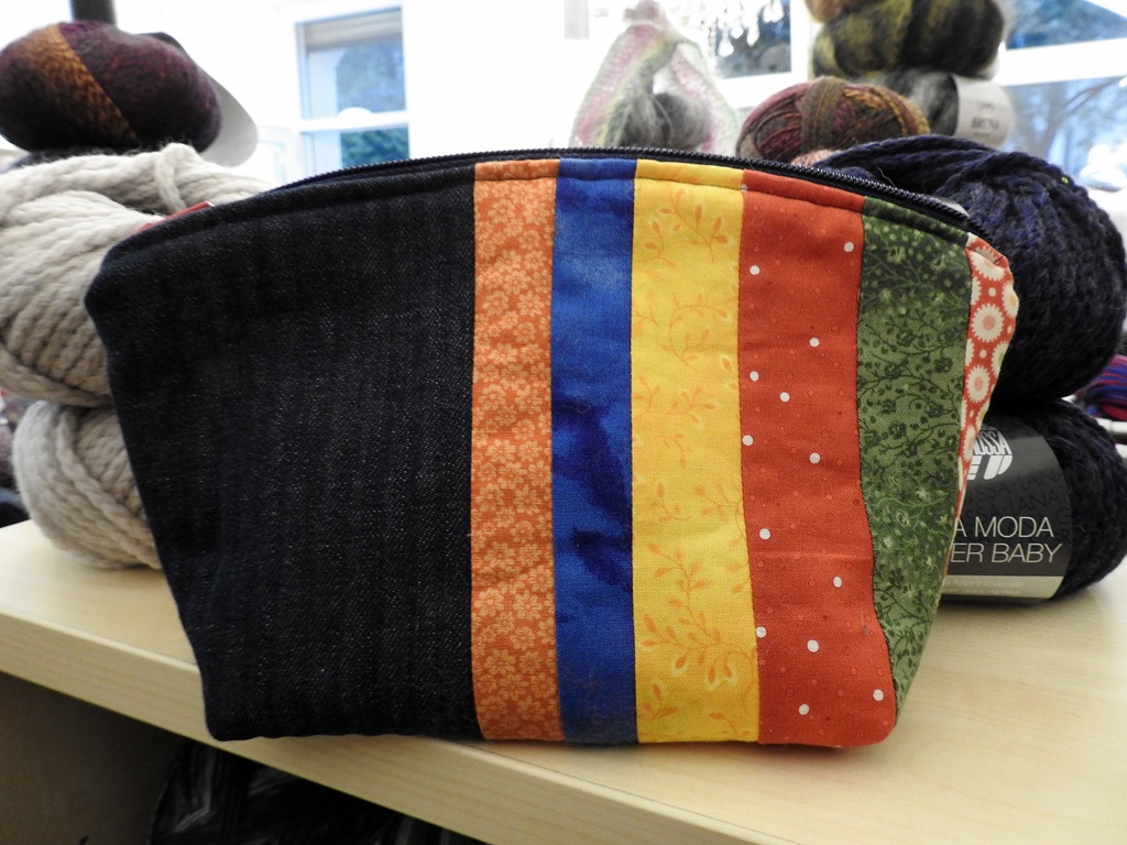 Das gefällt mir gut! Jeans und bunte Streifen sind eben immer ein Fröhlichmacher. Auch die Form des Täschchens ist gemütlich – da kann ja nun an langen Abenden fleißig gestrickt werden.