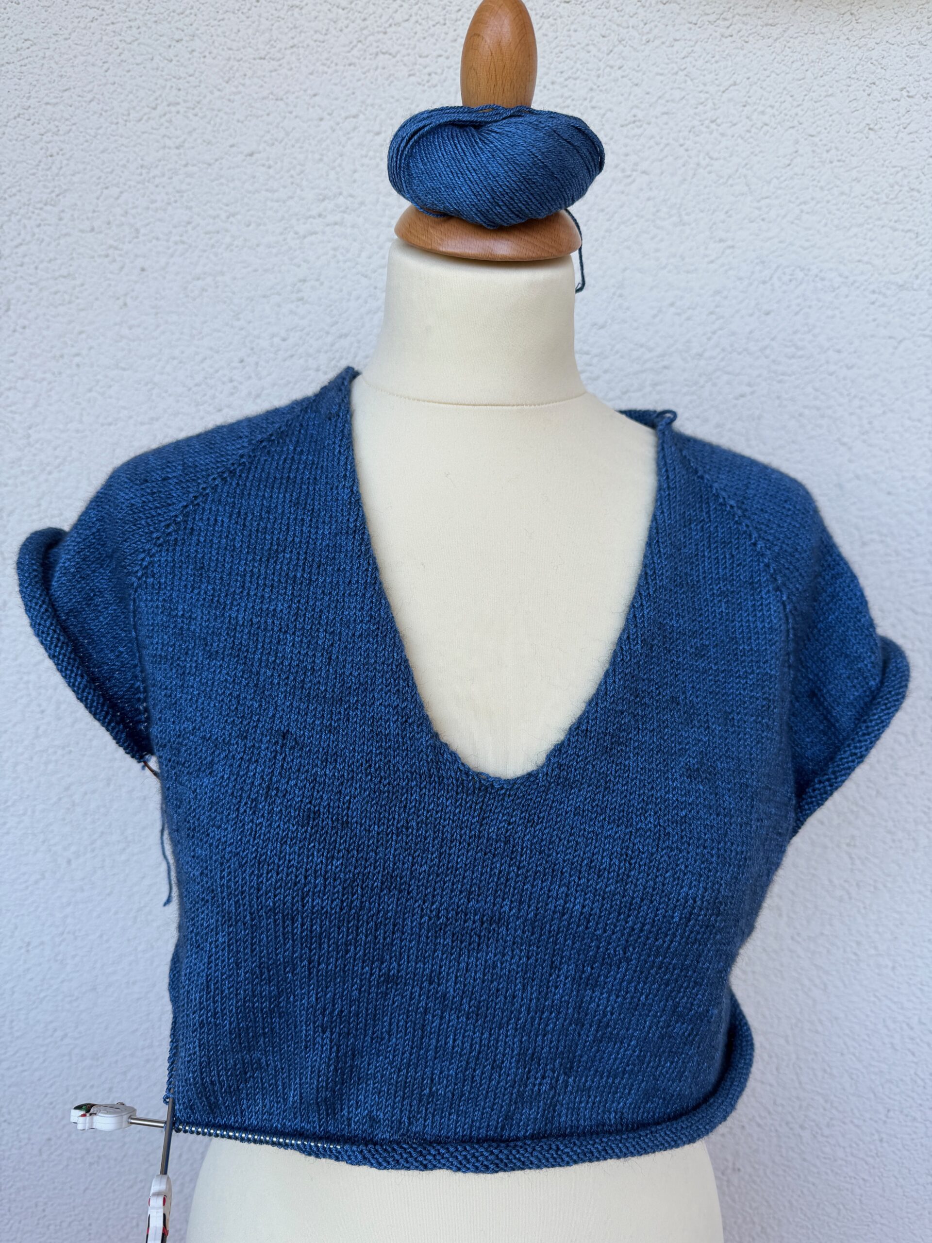 Ich habe in der Woche nur den einen Ärmel geschafft, weil ich noch eines von meinen angedachten Projekten begonnen habe. Mein Wahl fiel auf das CumulusTee von Petite Knit. Warum? Ganz einfach! Hier musste ich die Wolle nicht wickeln. Dazu hatte ich gerade so gar keine Lust.