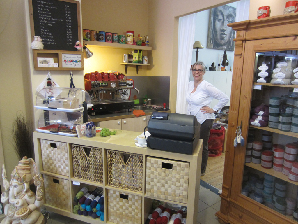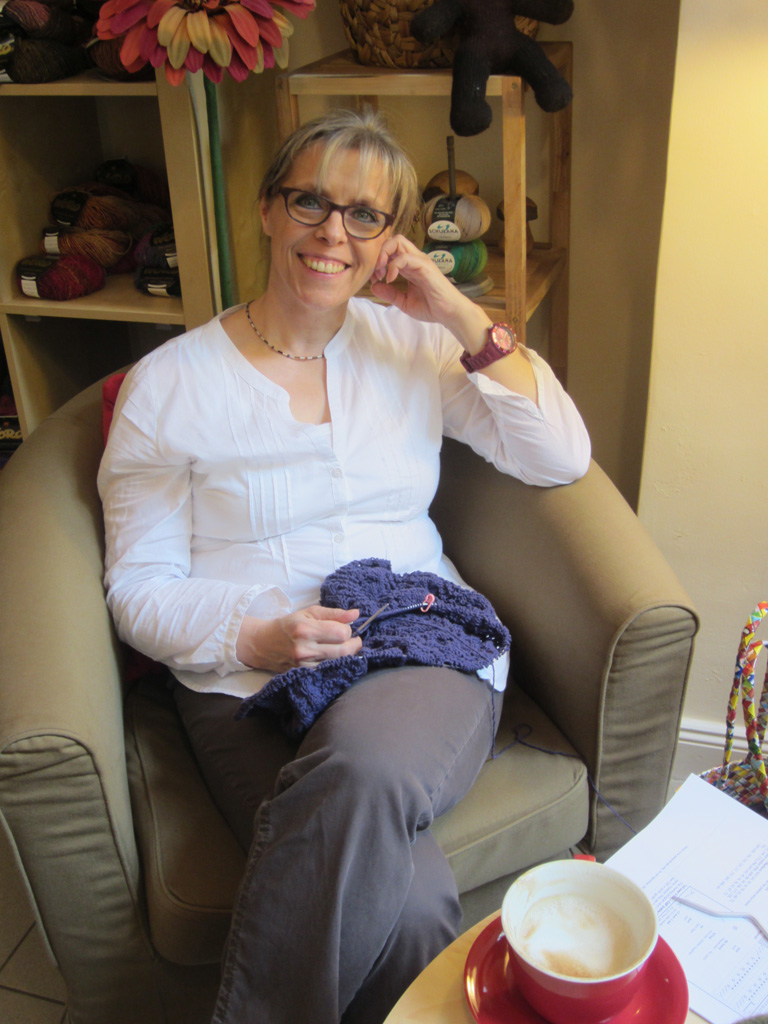 Und immer wieder gesellen sich Strickerinnen zu ihr, um gemeinsam zu plaudern, zu stricken und einen Cafe zu schlürfen.