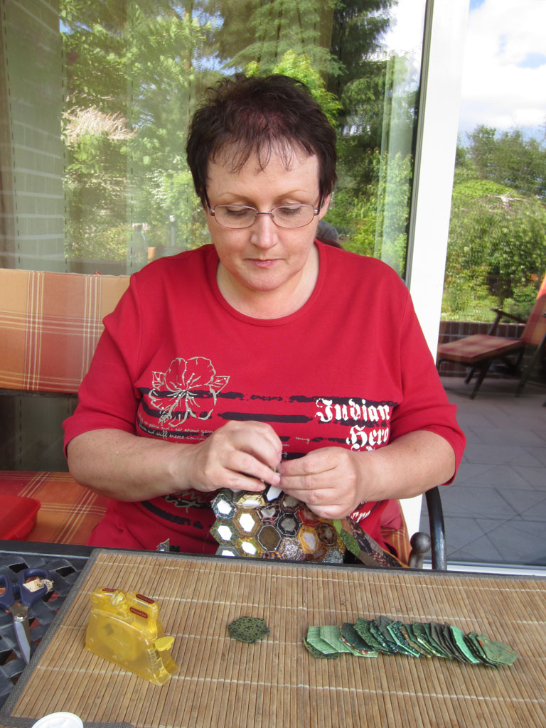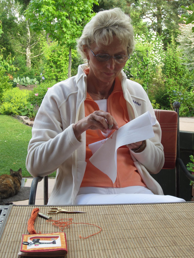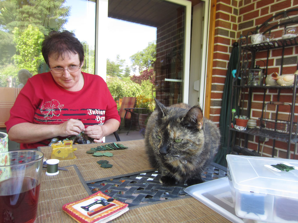 Klar haben wir auch gestichelt. Marlies arbeit noch immer fleißig an ihrer Hexagondecke.