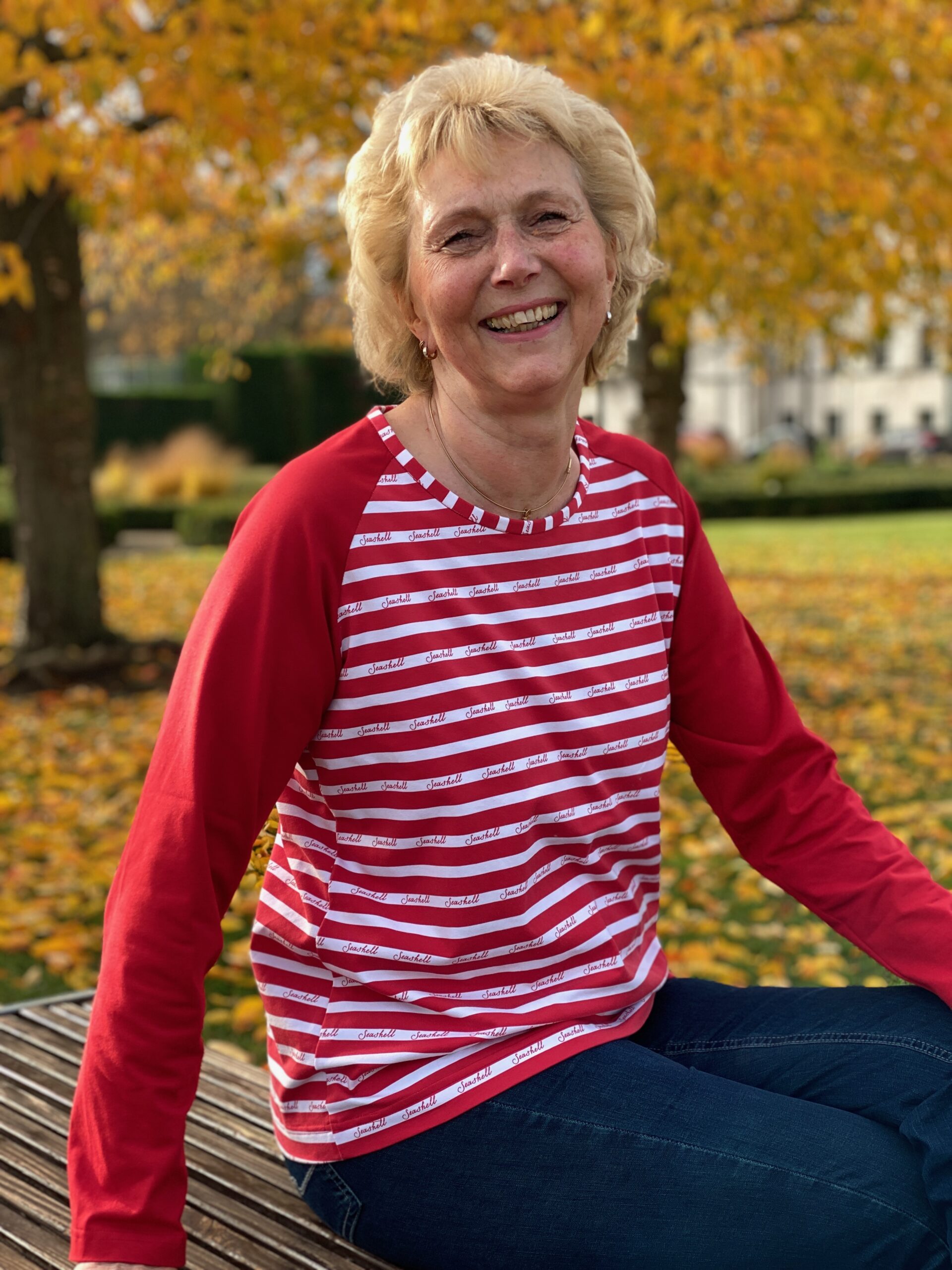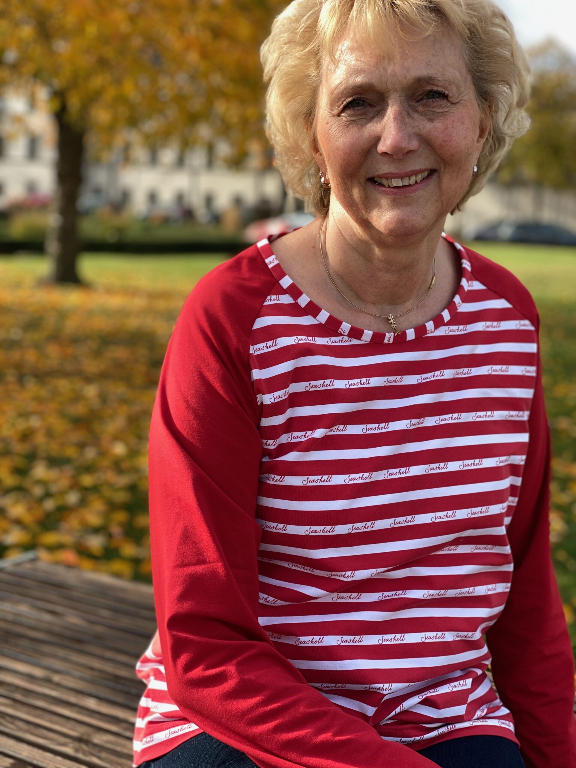 Nun aber zu meinem diesjährigen Shirt. Von einer Nähfreundin bekam ich kürzlich ein kleines Päckchen, aus dem ich auch auch einen Meter Stoff auspacken durfte. Rot/weiß gestreift mit einem maritimen Schriftzug. Kombiniert mit einem unifarbenen roten Jersey die perfekte Kombination für das Raglanshirt Combina.