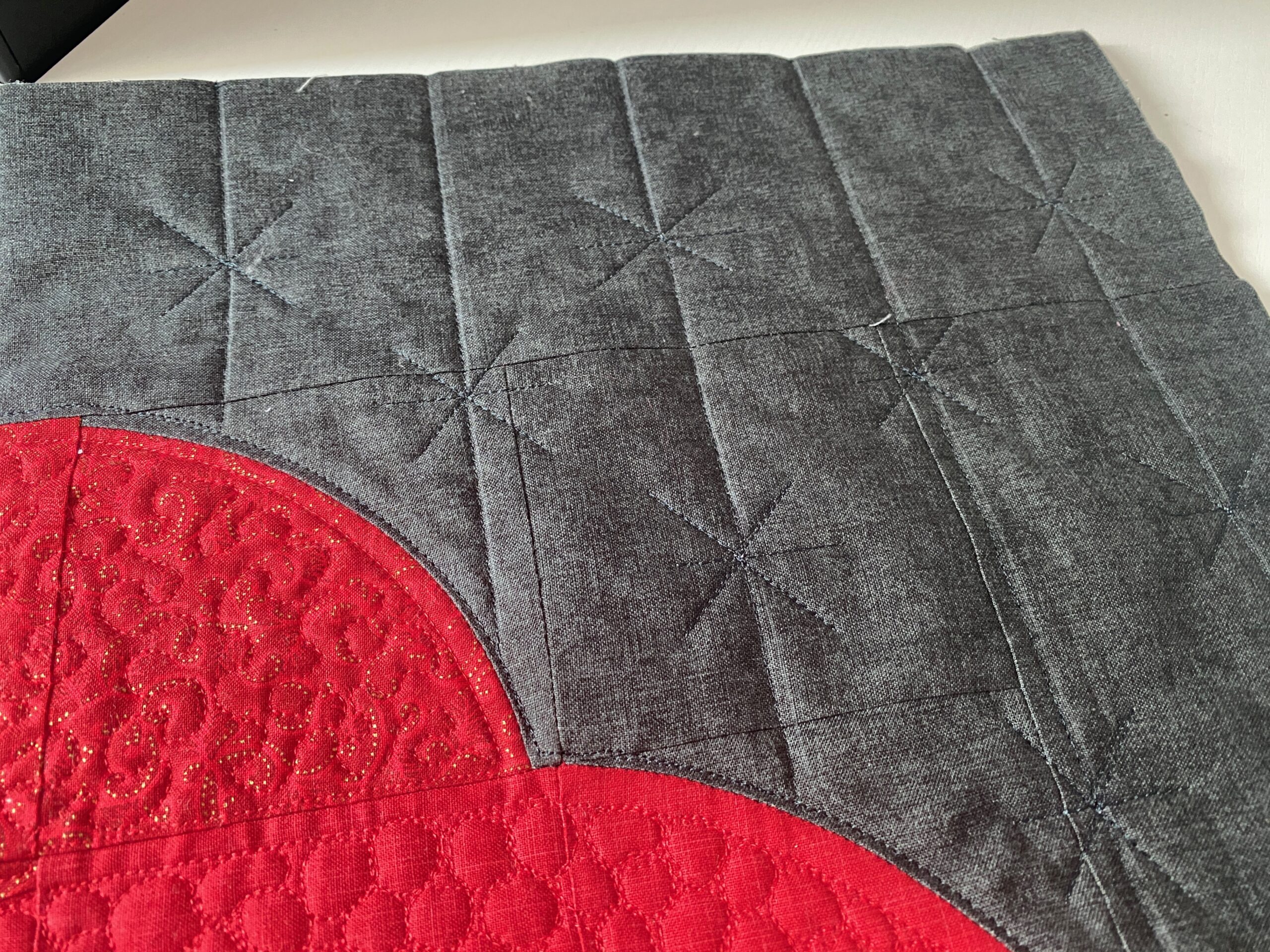 Jetzt noch der Hintergrund. Der sollte etwas spartanischer gequiltet werden. So habe ich mich nur für aneinanderhängende einfache Sterne entschieden.