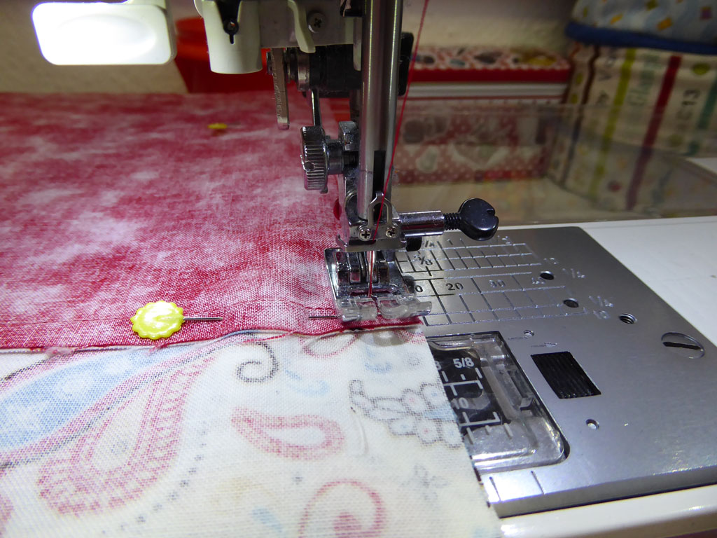 Jetzt hat die Stickmaschine Pause und die Nähmaschine muss arbeiten.