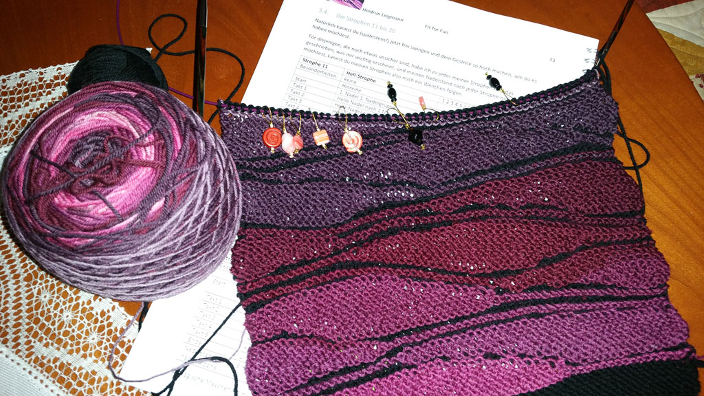 … und bevor ich zum Klöppeln musste noch eine Strophe am Fit for fun-Teilchen gestrickt.