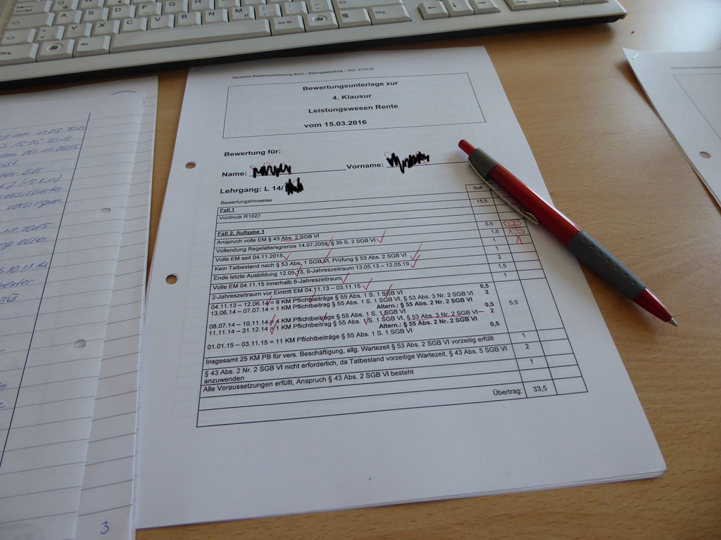 Nach dem Mittagessen im Hotel Mama noch zwei Klausuren korrigiert.