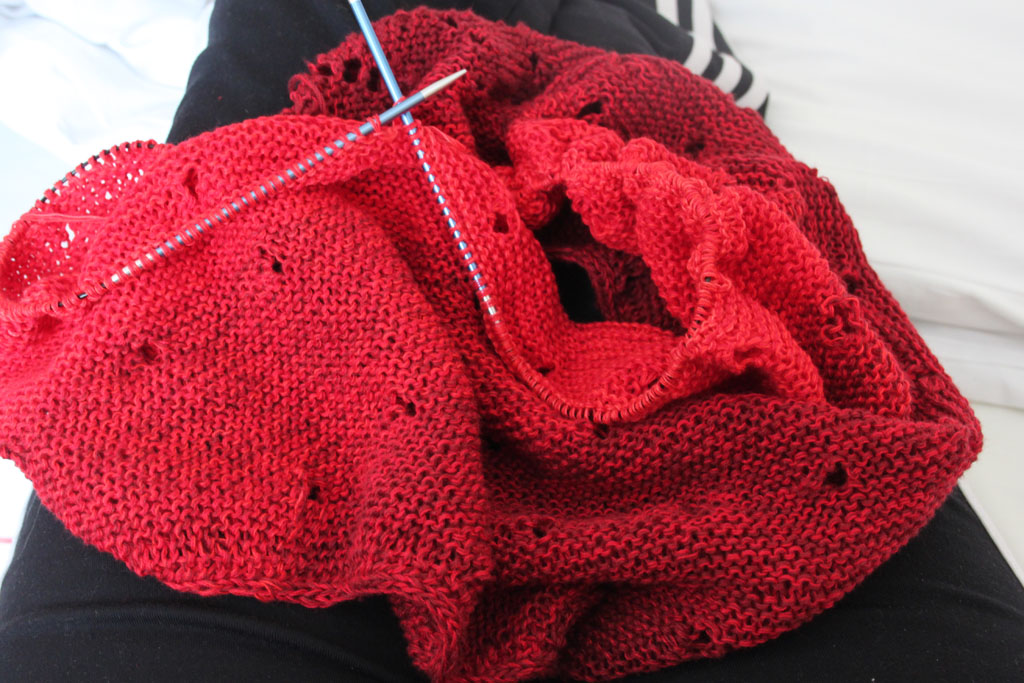 Noch acht Reihen und dann habe ich den ersten Teil fertig und es heißt warten bis Freitag.