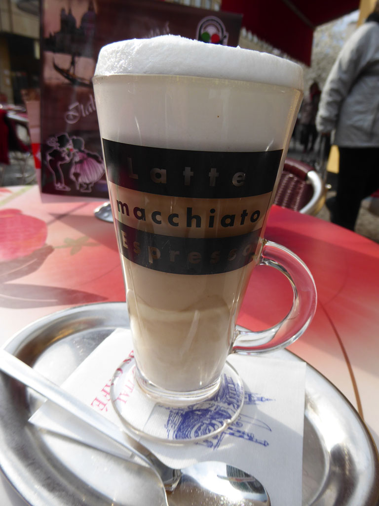 Hier kann “frau”, die am Nachmittag endlos viel Zeit hat, in Ermagelung schöner Geschäfte nicht mal richtig shoppen gehen. Aber immerhin hat die Eisdiele wieder geöffnet. Und da das Wetter noch immer ein bisschen schön war habe ich meine Latte Macchiato im Freien genossen.
