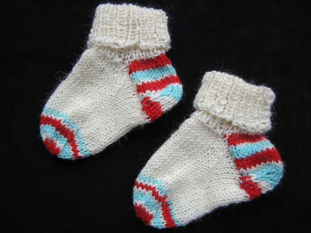 Also weiße Wolle rausgekramt und so entstanden dann diese Babysöckchen in der Kindergröße 62/68.