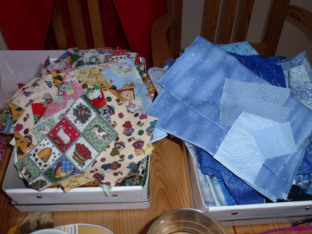Einmal die „Rausgucker“-Stoffe, Stoffe für den Himmel und die Häuserbaustoffe!