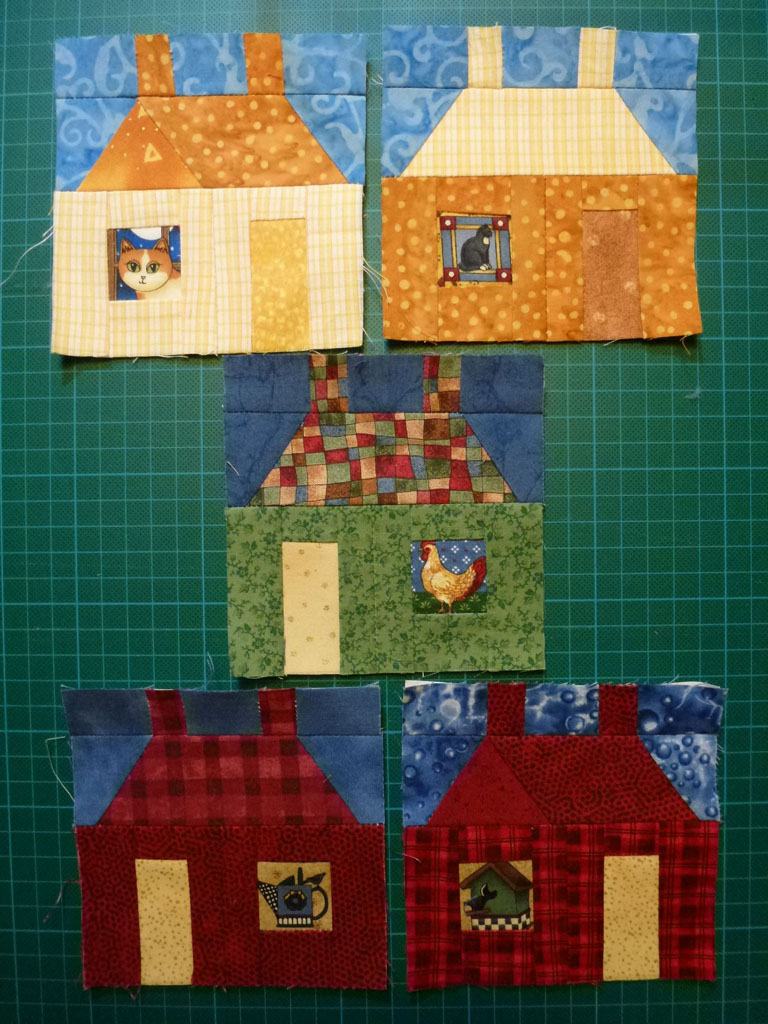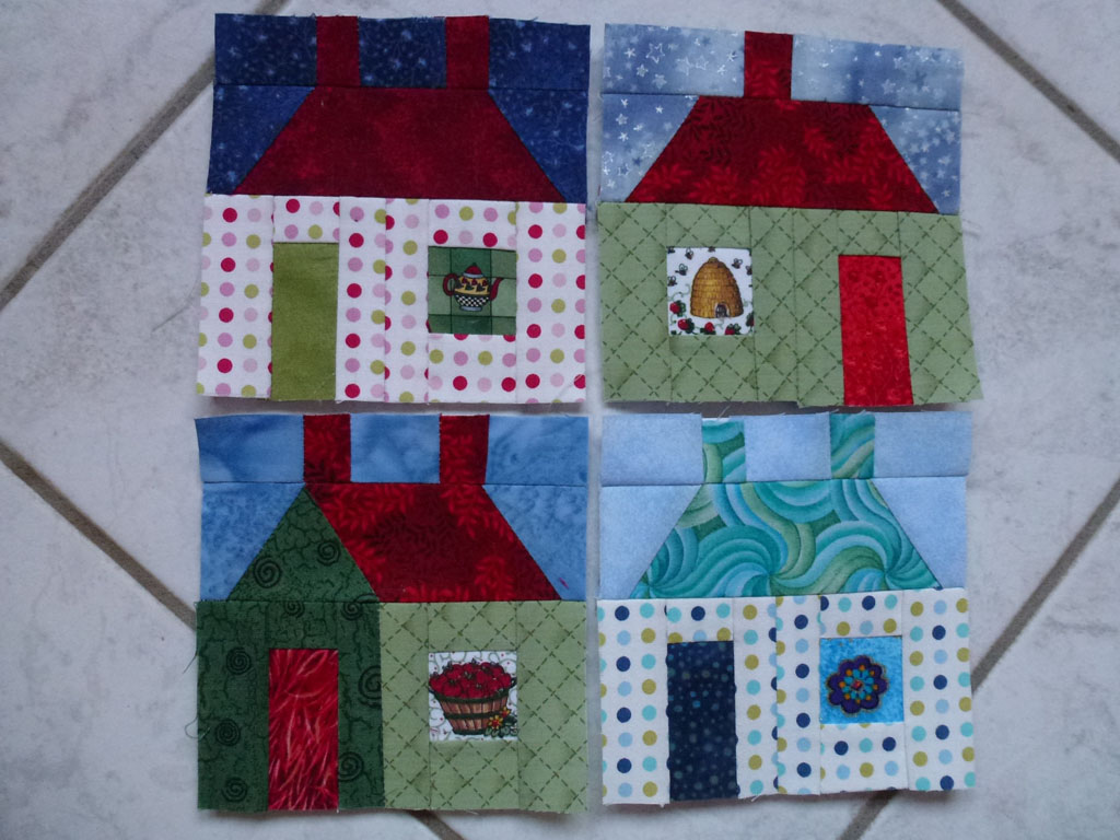 Sie wollte die Häuser nun doch etwas kleiner ( 10,5cm x 10,5cm einschließlich Nahtzugabe) und sie wollte einen blauen Himmel 😉