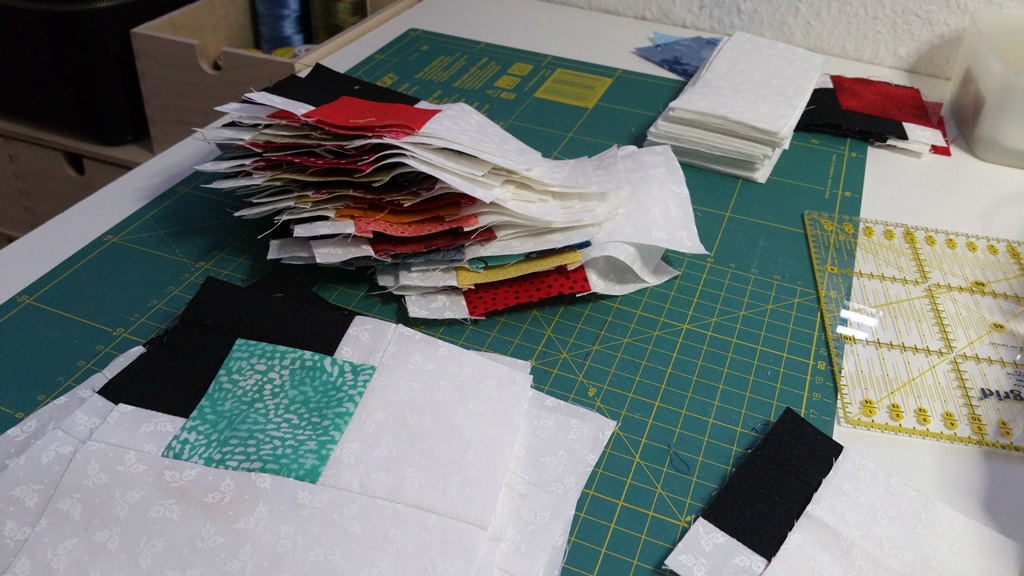 Mir waren ja gestern Abend die weißen Streifen ausgegangen, also habe ich als erstes wieder welche zugeschnitten. Viele wie ich dachte.