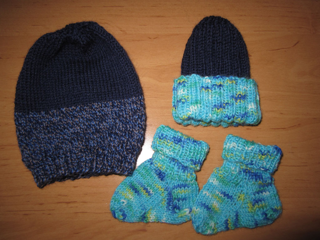 Ulrike war fleißi und hat nich zwei mützchen und ein Paar Söckchen für die Frühchen gestrickt. Damit hat sie mich echt überrascht, denn das hat sie mir vorher nicht verraten.