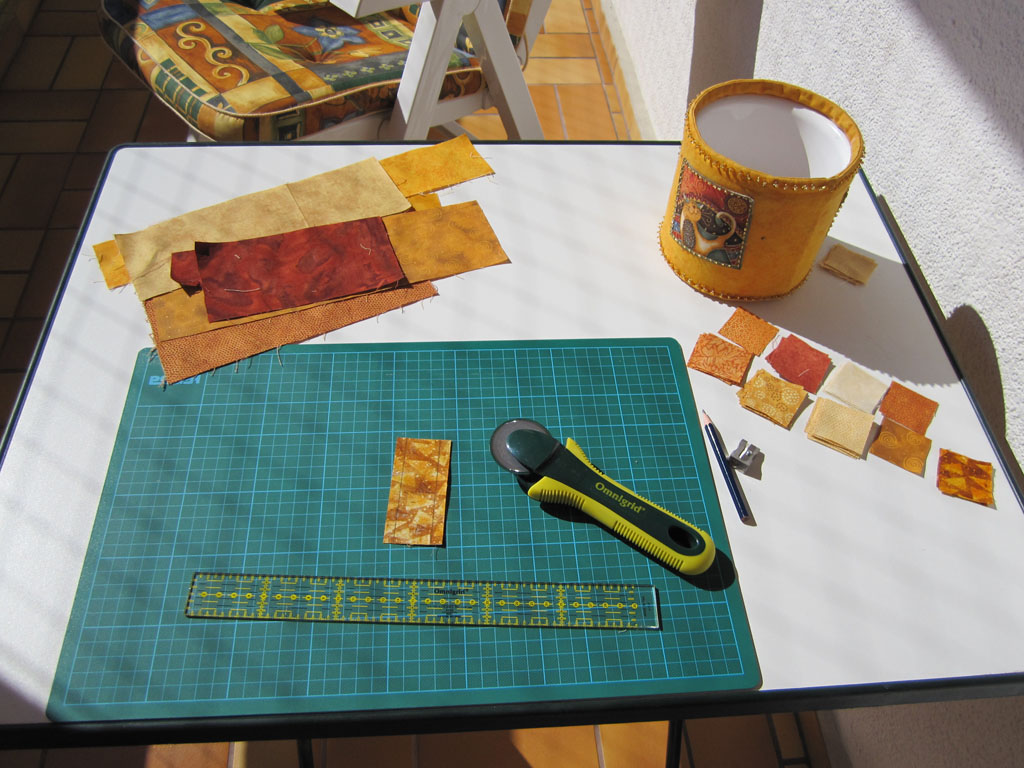 Ich hinke beim Mystery-Sticken dolle hinterher. Also habe ich heute ganz viele kleine Quadrate (2,5 xm x 2,5cm, zuzüglich Nahtzugabe) zugeschnitten.
