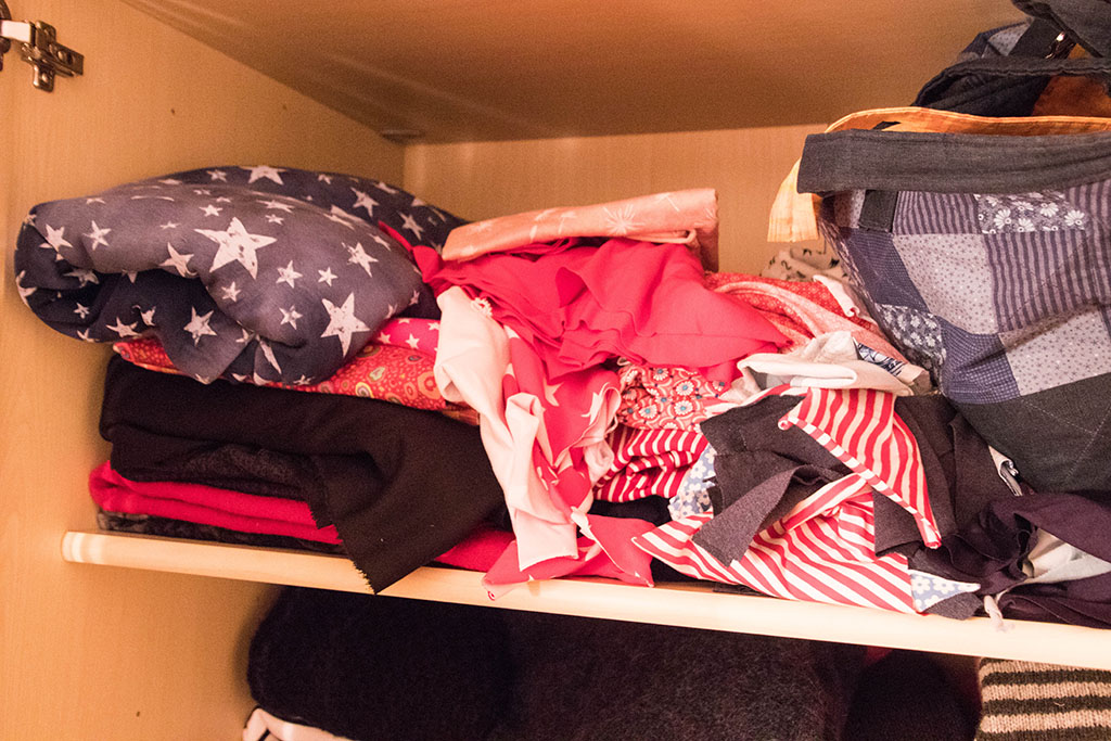 Schrankfächer liegt Stoff verteilt. Das stört mich ein wenig und daran