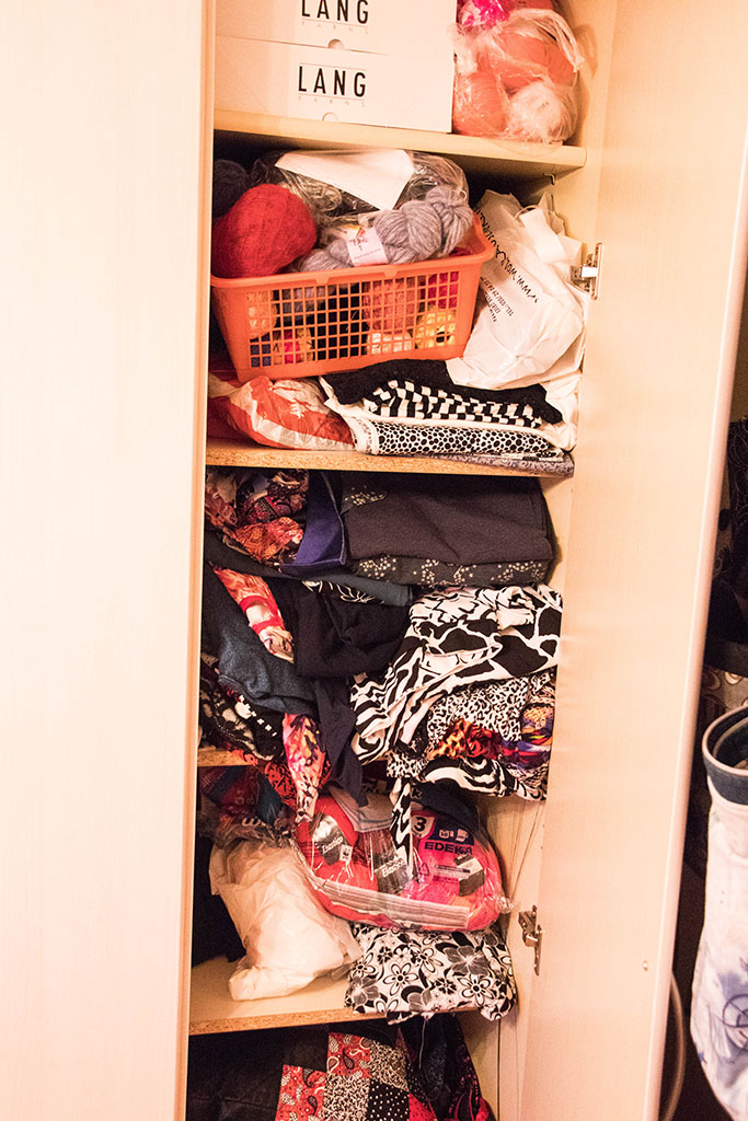 Und der Schrank daneben. Voll mit Stoff und Wolle.