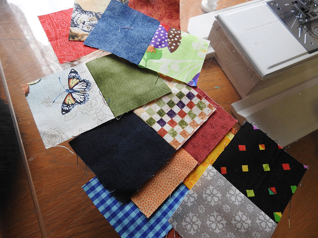Vor dem Nähen habe ich mich erst mal durch meine Quadrate gearbeitet. Damit ich beim Zusammennähen nicht immer zu den gleichen Quadraten greife, habe ich mir mal einen Stapel zurecht gelegt.