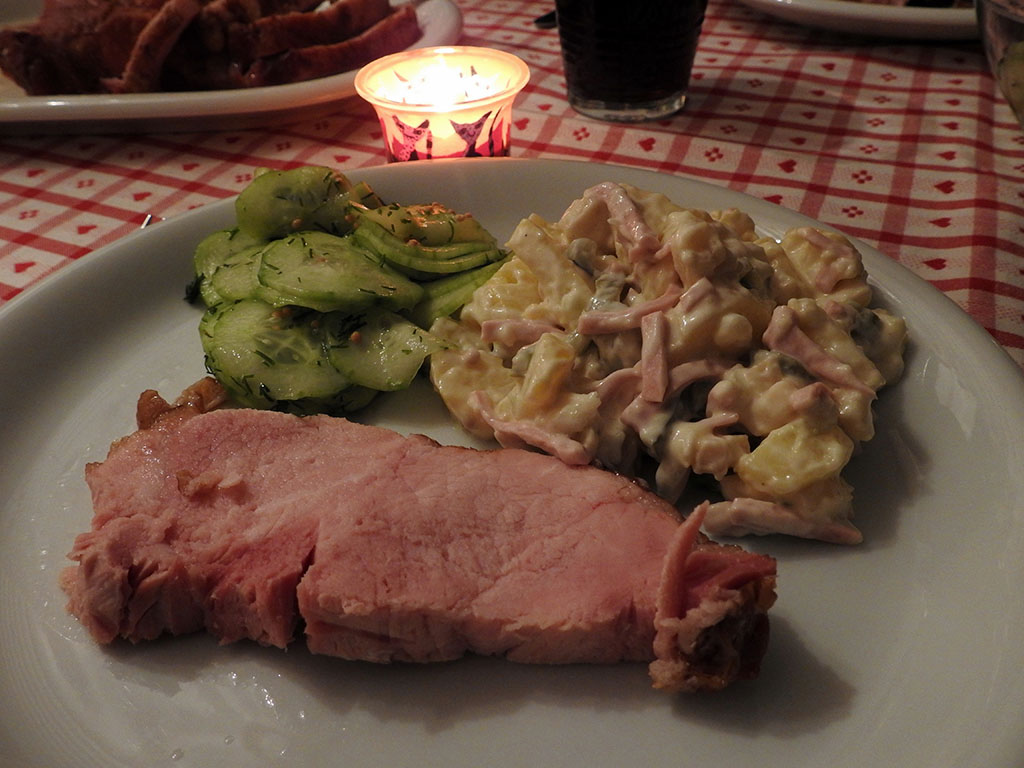 Ich starte jetzt mal in die Küche. Meine Eltern kommen zum Essen hoch. Bei uns gibt es nur Kassler aus dem Bratschlauch mit Kartoffelsalat à la Mama – den haben wir Beide gestern schon gemacht – und noch etwas Gurkensalat. Das habe ich mir so gewünscht!