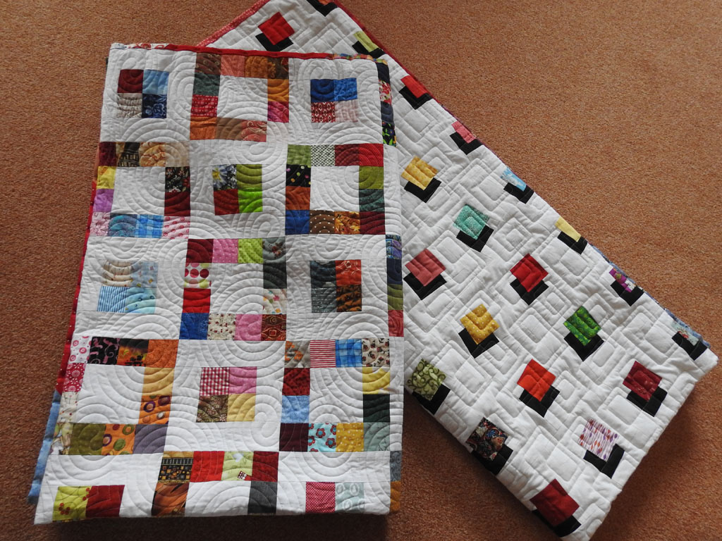 Da beide Quilts ScrapQuilts sind bekommen sie auch ein schönes buntes Binding!