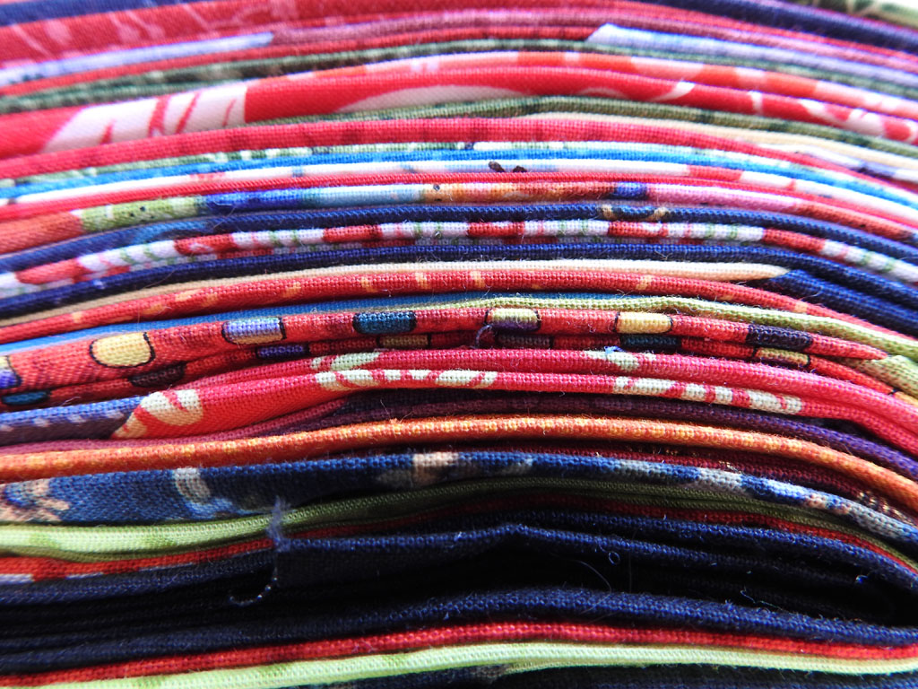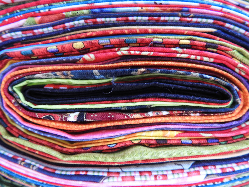 Nun liegen sie ordentlich zusammengefaltet und dürfen mit in den Urlaub, damit ich dort das Binding auf der Rückseite mit der Hand annähen kann.