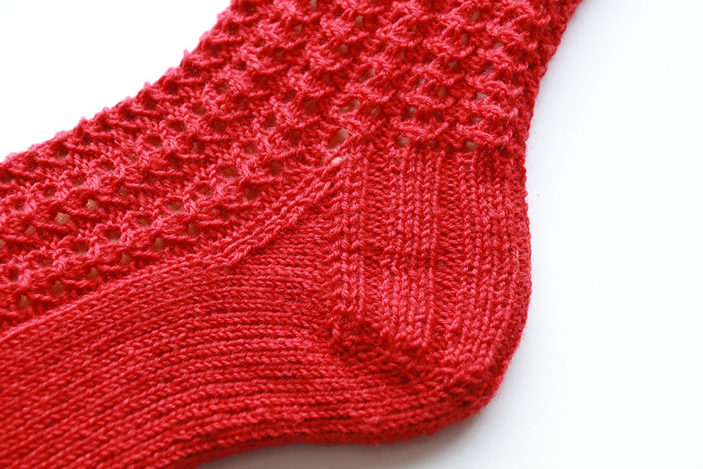 Und auch die Ferse noch ein bisschen näher. Da habe ich mich diesmal für rechts-links-Rippen entschieden.