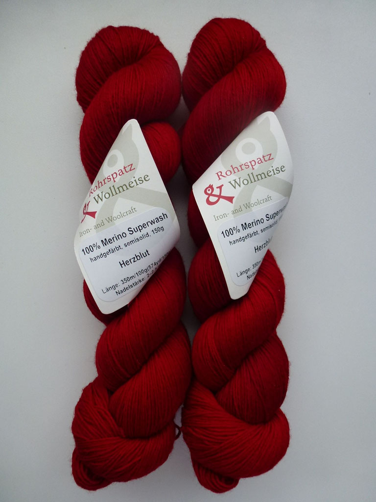 Meine Wollwahl ist auf eine Wollmeise mit dem wohlklingenden Namen „Herzblut“ gefallen. Ein bisschen was davon habe isch schon in meinem Geckolino verstrickt, aber ich hatte zwei Knäule.