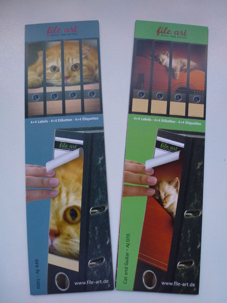 Diese Idee finde ich auch nett. Aufkleber für Ordner. Die ergeben zusammen ein Bild.